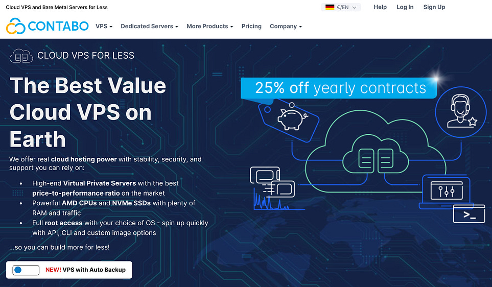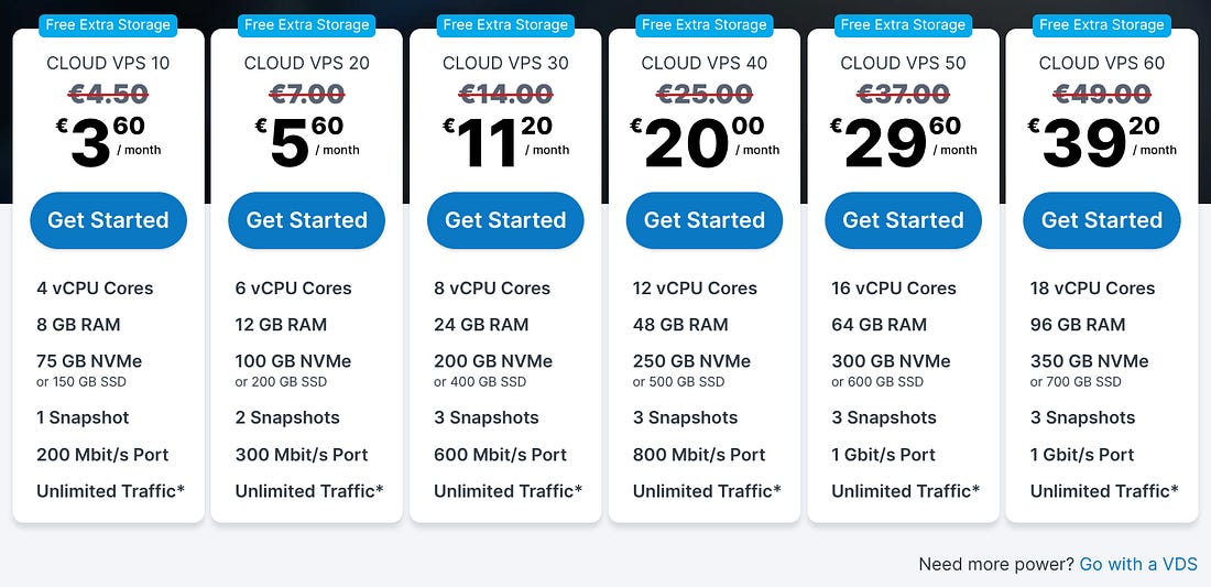 I’m currently using the Cloud VPS 30 for only €11.2/month, which has 24 GB RAM (more than my laptop), 8 vCPU Cores, and 400 GB SSD. This plan is more than enough for most automation tasks, but feel free to have a look at the other VPS and VDS options available.