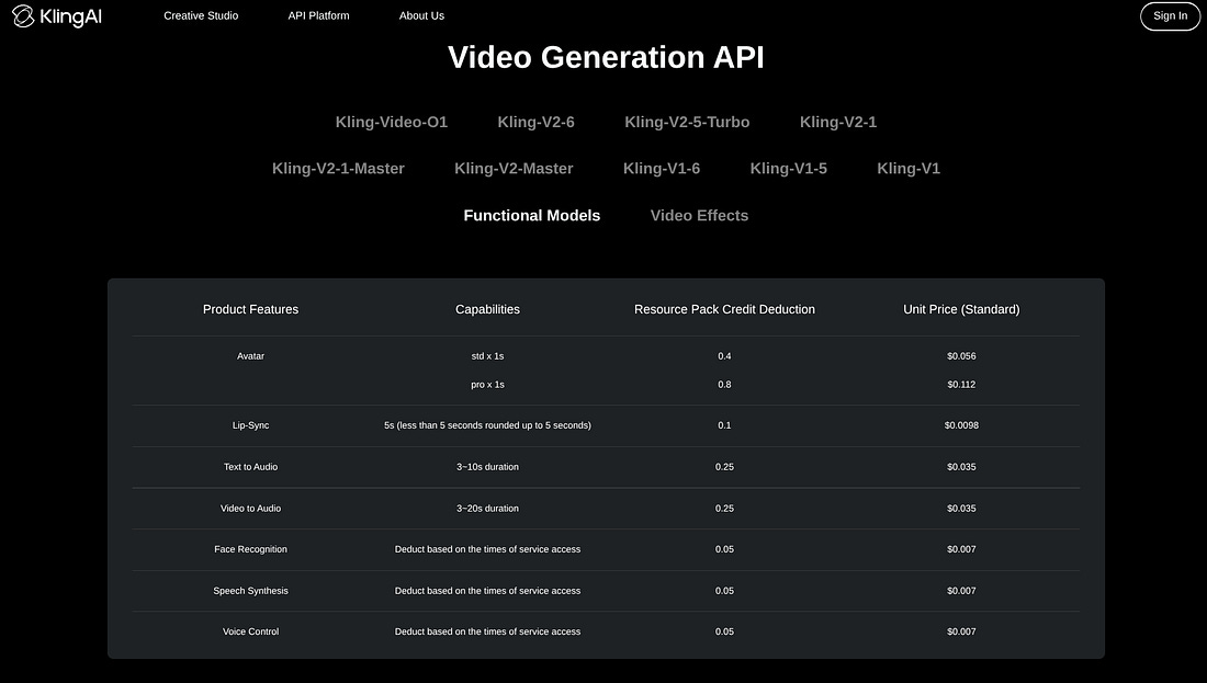 The pricing plans for the API usage are different than the ones previously discussed. In our case, we’re going to use the pricing that is visible under the Functional Models, which includes the Avatar, Lyp-Sync, and other products.