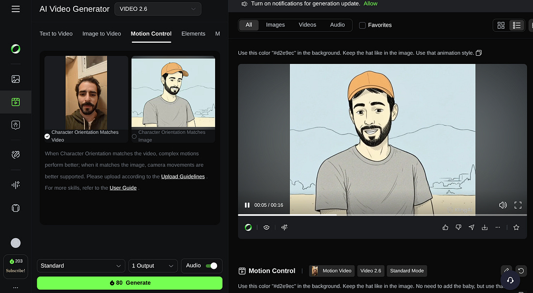 Before picking a pricing plan, you can see if you have enough credits to make your first experiment with the Motion Control model under the AI Video Generator tab.