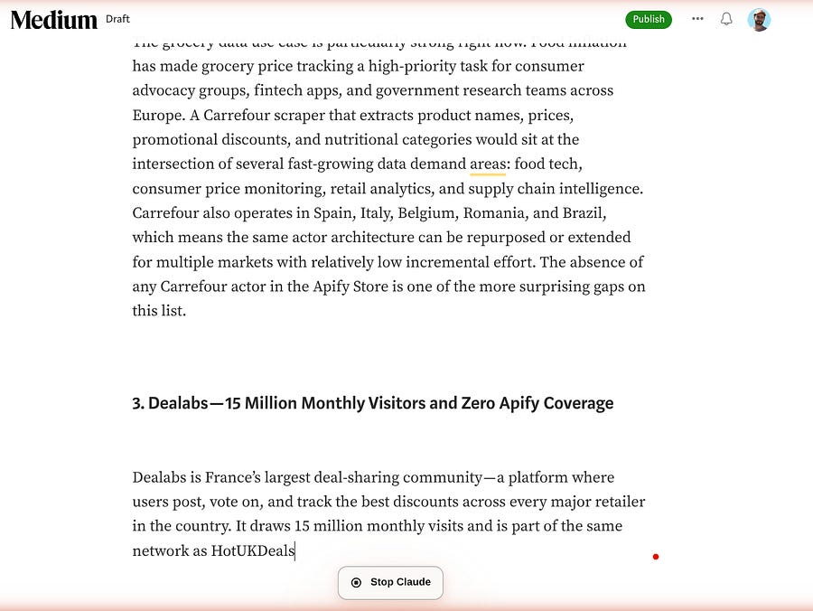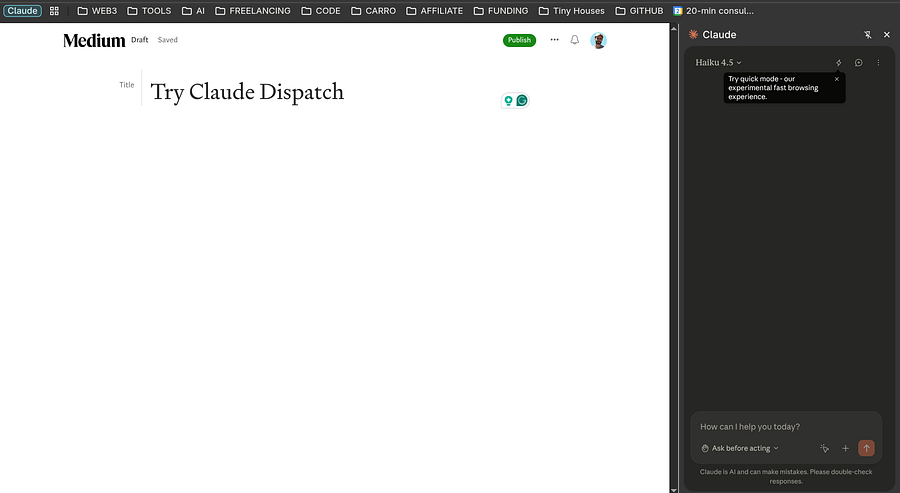 Now, I’m going to show an example where you can literally be walking on the street and ask Claude to write an article on Medium and publish it (with voice, please, do not write while walking! 😆).
