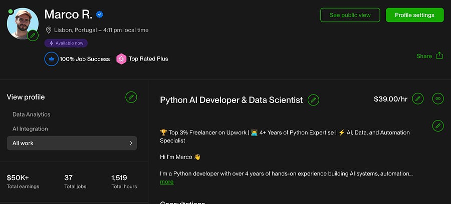 🏆 Top 3% Freelancer on Upwork | 👨💻 4+ Years of Python Expertise | ⚡ AI, Data, and Automation Specialist