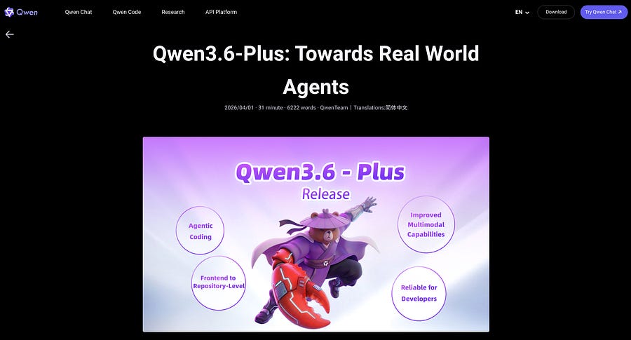 Qwen3.6-Plus: If you need to dump an entire codebase, enterprise repository, or a mountain of transcripts into your agent’s memory. Also free and tailored for AI agents.