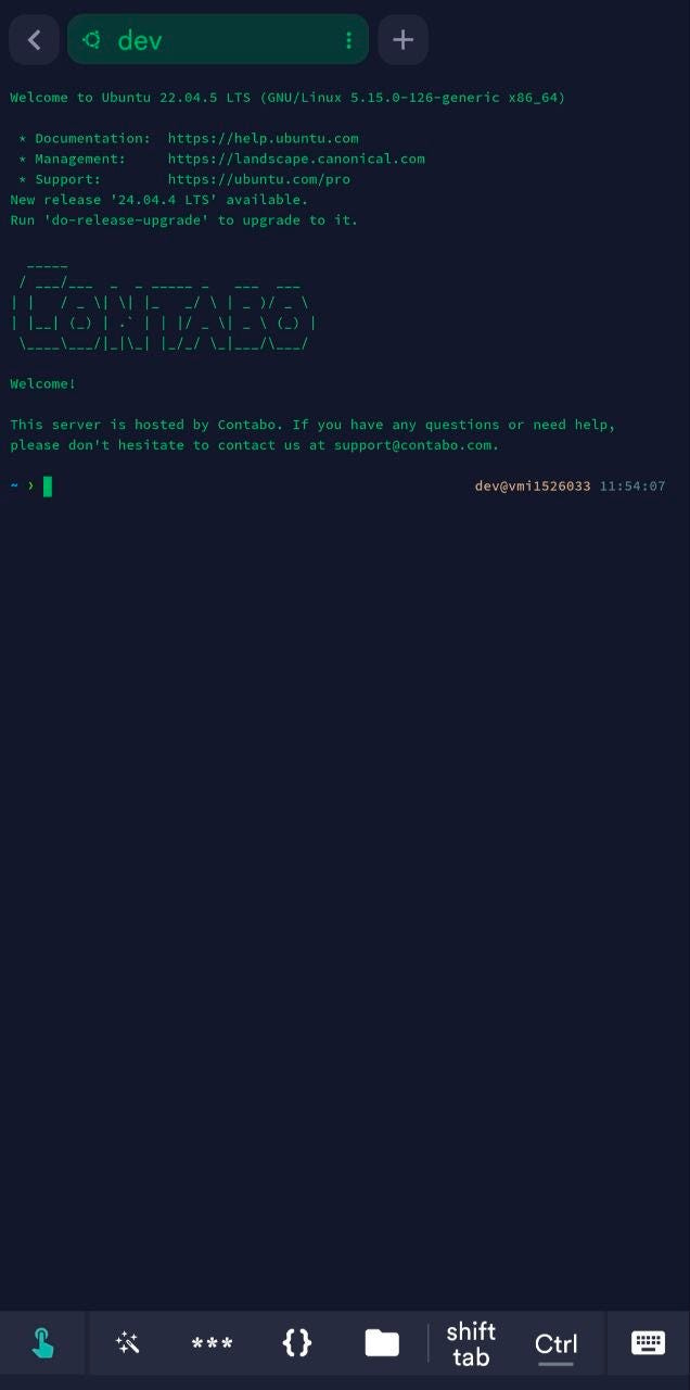 There are two good solutions to access your VPS machine from your smartphone: Termius and Termux. The latter is free and open-source, and Termius offers paid plans, but for connecting your VPS, you can stick with the free tier.