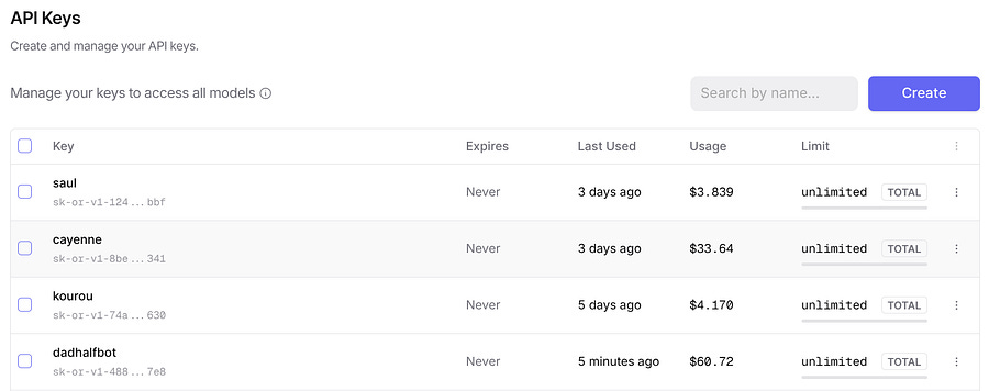 If you want to monitor each profile’s token usage, you should create an OpenRouter key for each one of them, and it is also better to avoid having too many requests with your API.