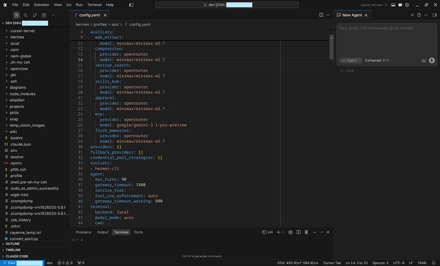 That’s all you need to start building with your agents while tweaking with Claude, Codex, or Composer 2. At least that’s my way of approaching things: use the Hermes Agent for creating skills, files, overall orchestration, and scripts, and use the extensions for editing and optimizing.