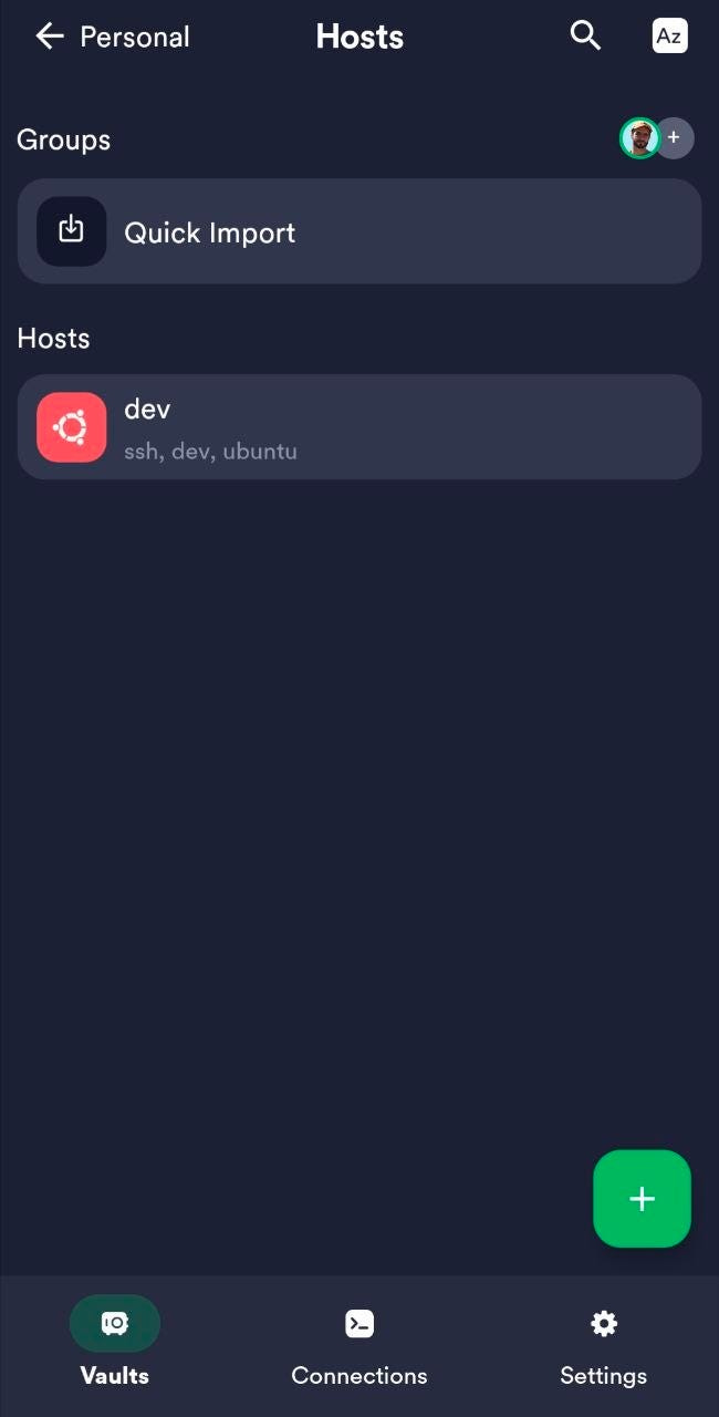 All that’s it, you should now be connected to your VPS on your phone. Note that this won’t work if you don’t have your smartphone connected to Tailscale’s network yet.