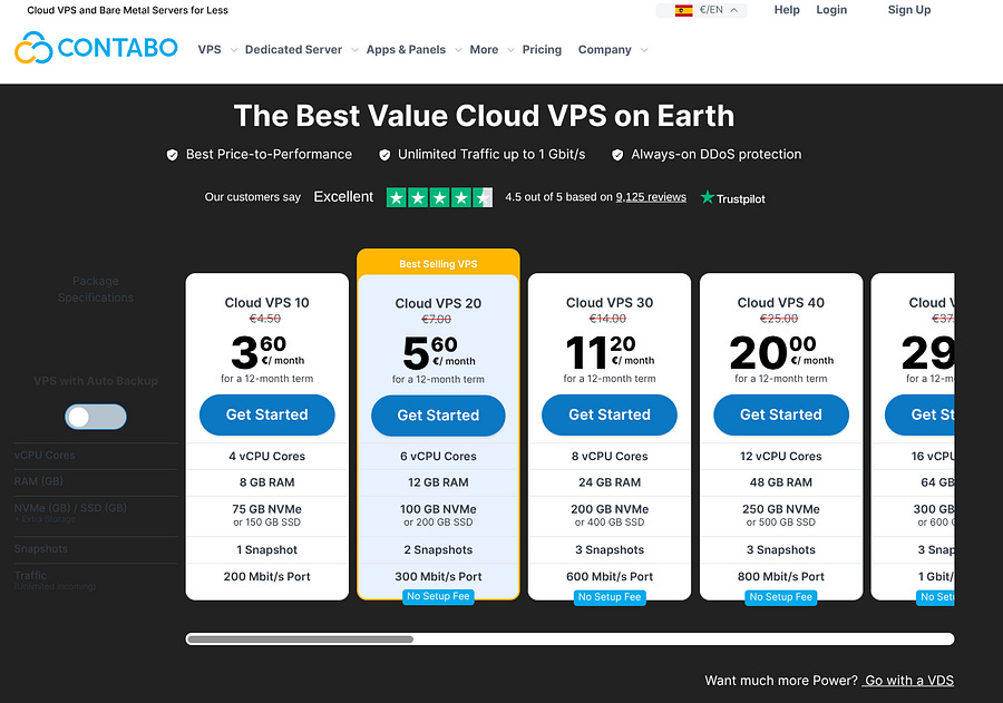 You can basically run your agent for only 3.60€/month, but if you need more performance, I recommend using a VDS (Virtual Dedicated Server). This way, your machine’s computational resources are not shared with other servers, and you gain more stability and speed.