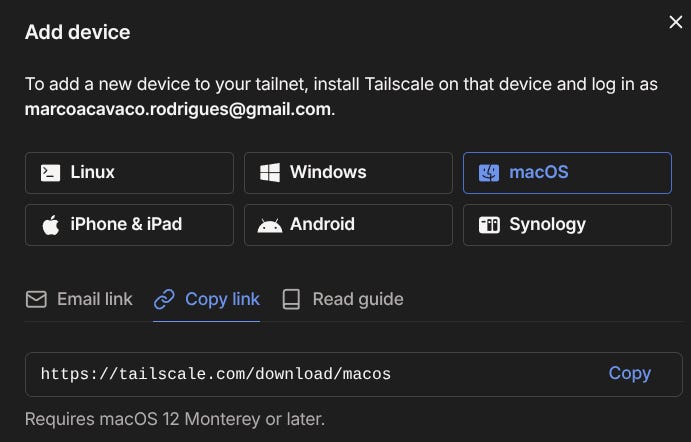 You can start by creating an account on Tailscale’s website, and you’ll be asked to add your first device.