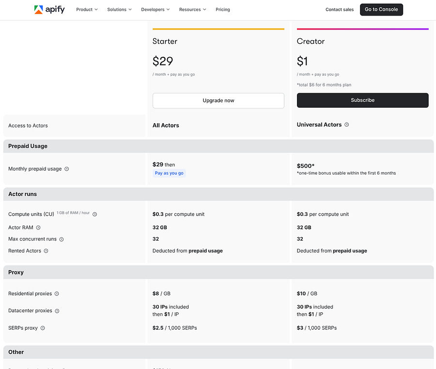 But don’t worry, you won’t need to spend too many credits if your crawler is working fine in your machine. You’ll only use the credits to test it on the platform. So $5.00/month is usually more than enough to start.