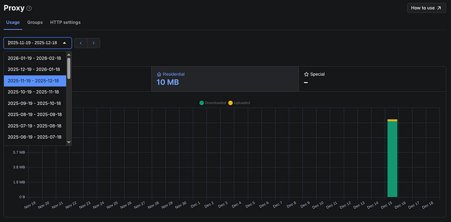 The Proxies page is convenient for developers who want to use Apify residential or datacenter proxies. Here, you can obtain proxy URLs and monitor their usage.