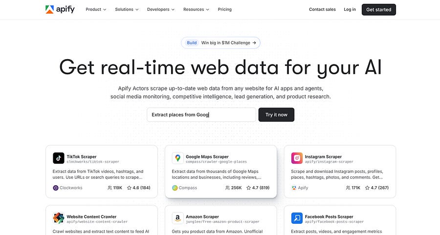 Integrations: You can connect actors with other actors, or with platforms such as Make and N8N.